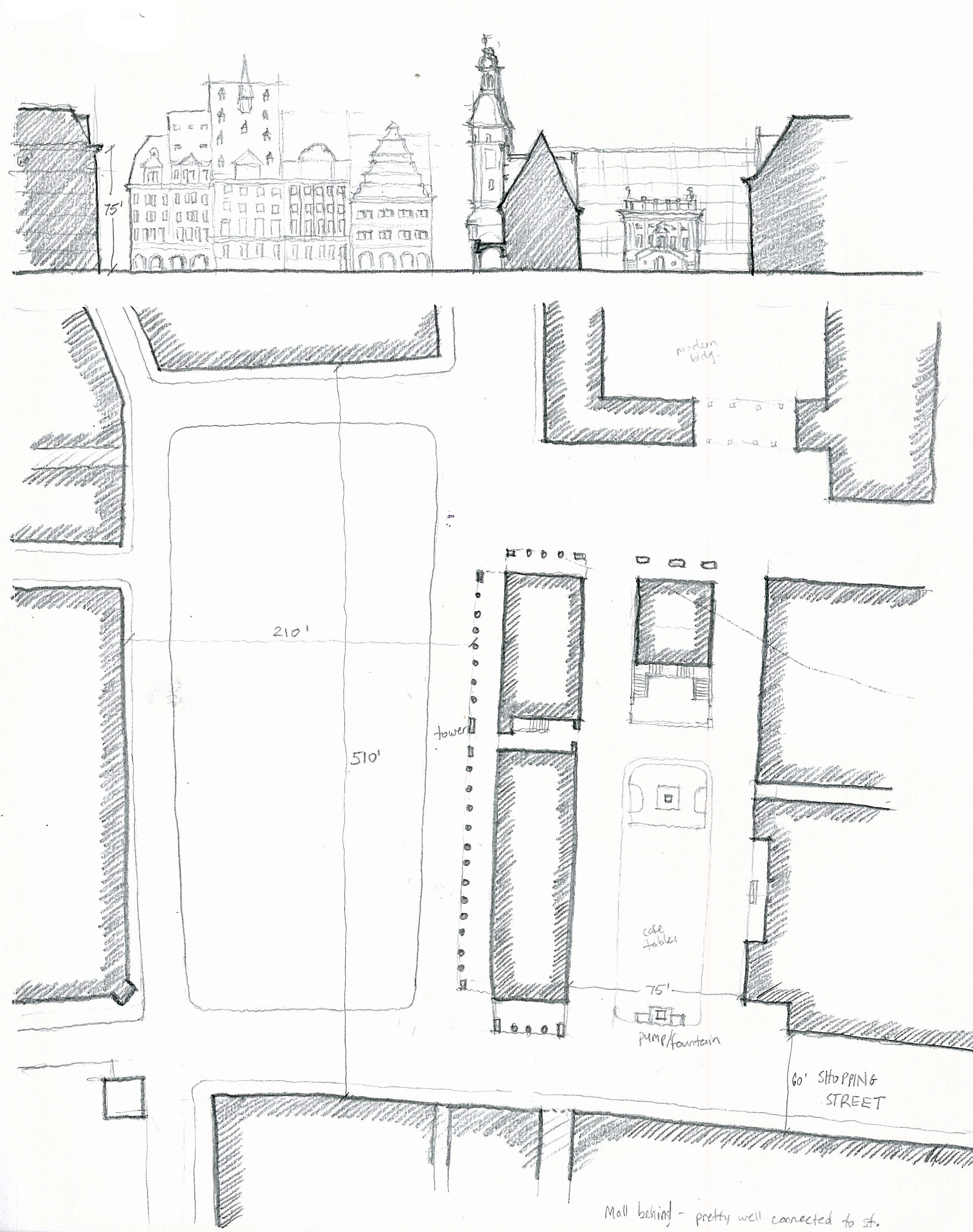 While working at DMSAS I got to talk with Jeffrey Loman and learn about his techniques for working with traditional media. Seeing the drawings he was producing and the beautiful renderings around the office reaffirmed for me the value of hand-crafted drawings in this computer age. Even though computer drawings and renderings are faster and more efficient, I don’t think they can totally replace the actual hand of the artist. Even though I probably do not possess the skill to be a master renderer, I want to continue fostering my hand-drawing skills as an analytical design tool.