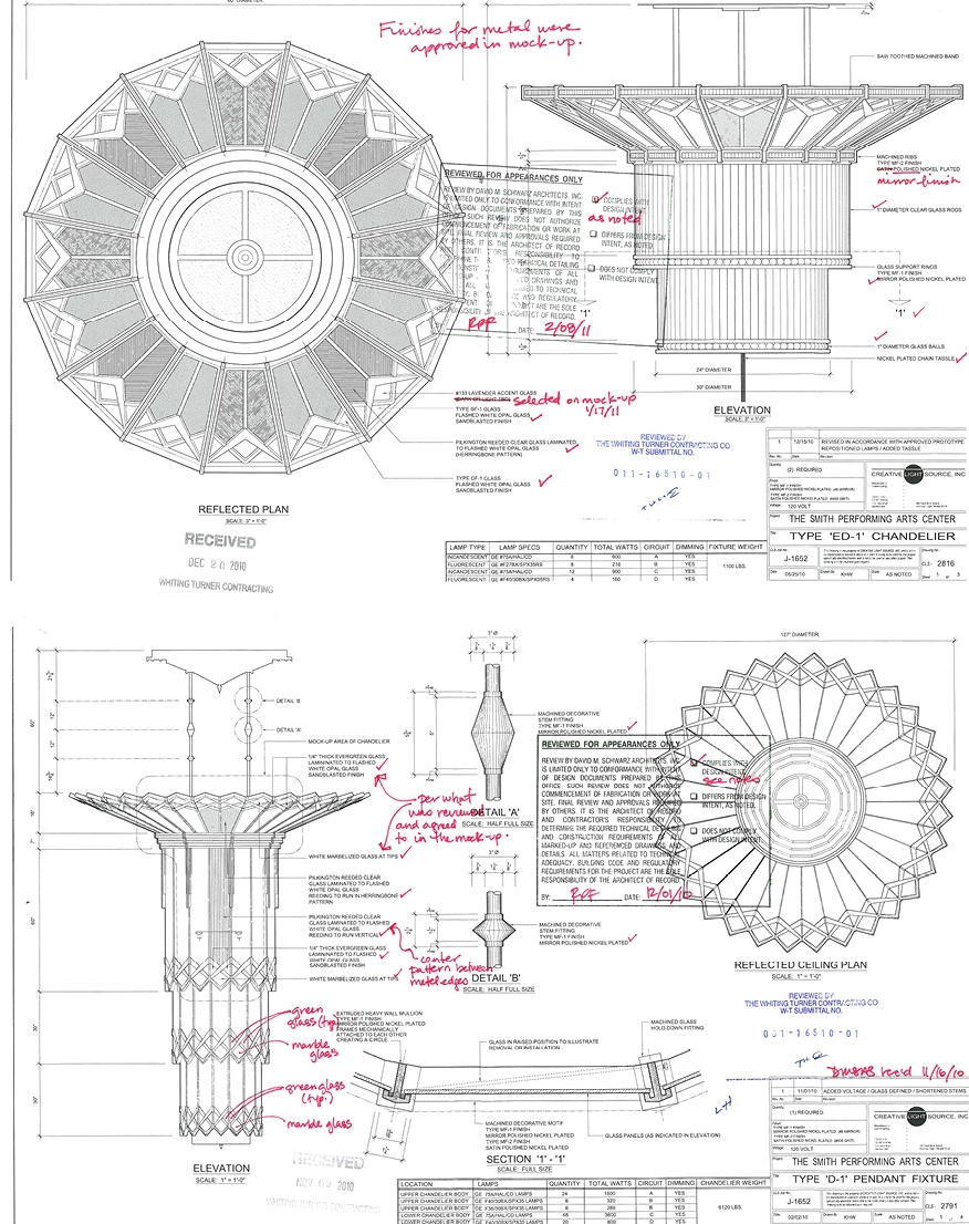 Among the most stunning of these very special attributes are the decorative light fixtures. David M. Schwarz Architects (DMSAS), in conjunction with Susan Brady Lighting Design (SBLD), developed and designed an exquisite collection of fixtures for this project. These designs were then made real through collaboration with the fixture fabricator Creative Light Source, Inc. (CLS). From design through fabrication, the team worked together to make the fixtures a functional, beautiful reality.