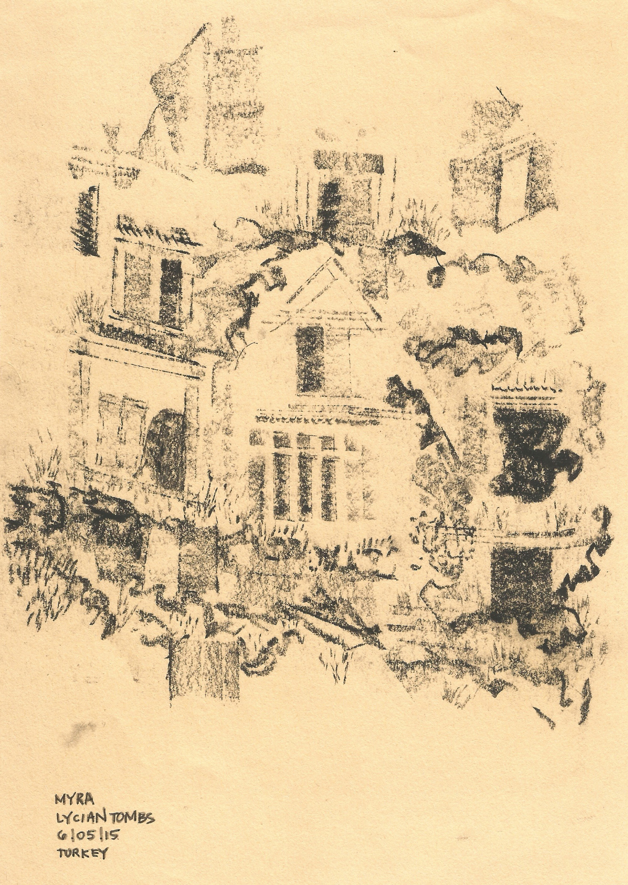 The charcoal drawings and the sketches made in my notebook are my most treasured souvenir of my travels. These drawings remind me of conversations sparked with others through drawing and they remind me of the spaces and places I experienced and will be able to use as a catalog of precedents in the future. I learned the great value not only of the product of the documentation, but also the process, thought and analysis that occurred while documenting sites.